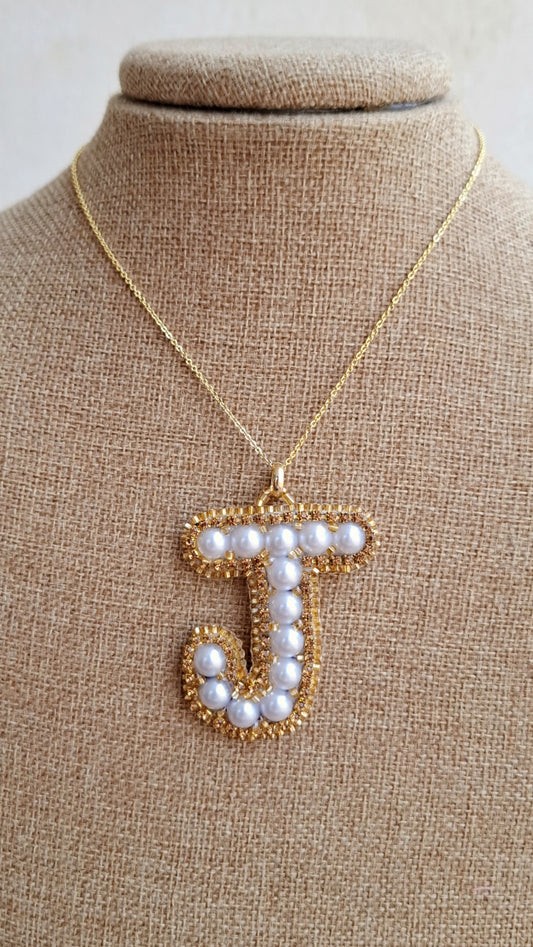 Collar con colgante de perlas "J" personalizado con inicial.