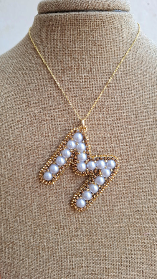 Conjunto de joyas personalizadas con inicial "M" de perlas